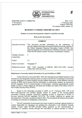 IMO – MSC 111-7 – Update on recent developments related to maritime security (Secretariat)